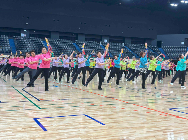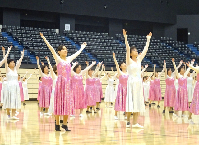 抜けるような青空!秋の気配を感じる中、会場は大勢の皆さまの熱気に包まれました。ふれあいタイムでは、二人組でベルターをタッチしながら交流を深め、発表タイムではベルや五輪ベルタ―の実技で練習の成果を存分に発揮されました。会場は大きな拍手に包まれ「発表はドキドキでしたが楽しかったです!」との感想もいただきました。また、会員代表実技に100人以上の皆様がドレスを着て参加、華やかな素晴しい演技に感動の嵐!今年は広い地域の皆様と交流ができ、喜んでいただけました。