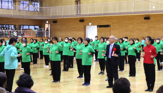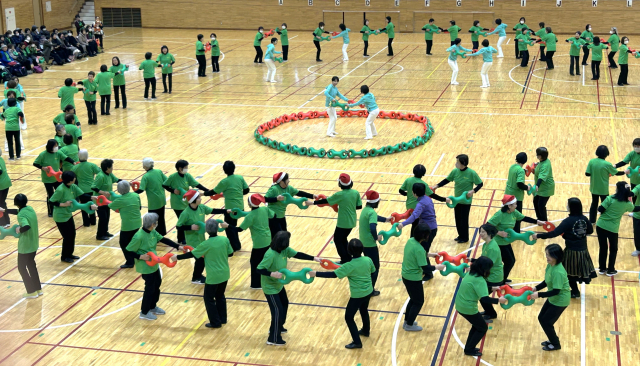 12月の忙しい時期と寒い中、478名の会員さんが参加してくださいました。オープニングで指導者が制服でウォームアップ1を披露。「わぁー」と歓声があがり、『皆さんご一緒に』では、来賓の蕨市長様も参加してくださり盛り上がりました。会員実技では、寒さも忘れて元気いっぱい踊ってくださり、『お楽しみタイム』は、クリスマスソングに合わせて一般参加の方もベルを上手に使って会員さんと一緒に楽しんでいらっしゃいました。つどいをきっかけに仲間が増えてくれることを期待しています。