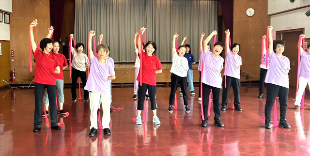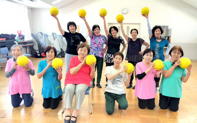 ほとんどが70代の元気な女性11名の教室です。健康への意識が高く熱心に動いて下さいます。出来ないことも笑って済ませられる気楽さと、楽しい仲間とおしゃべりをする情報交換の場にもなっています。大会やつどいには積極的に参加して下さいます。