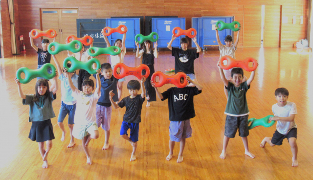 小学校の隣にある施設で開催しているので、ランドセルを背負って学校帰りに来てくれます。幼稚園児から小学6年生まで幅広い年齢で、高学年の子が小さい子の面倒を見たり、お手本になったりと、いつも和気あいあいとした教室です。賑やか過ぎるときもありますが、それぞれに元気いっぱい3B体操を楽しんでいます。