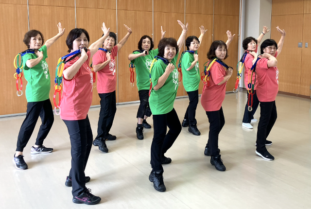 7年前に講座が教室となりました。みなさん生き生きとして、体を動かされています。痛いところもあるので、それをカバーできる筋力づくりを目指しています。年齢を忘れるくらいおしゃべり上手で、イベントにも参加してくれます。今は生涯学習センター祭りに備えて、頑張り中です。