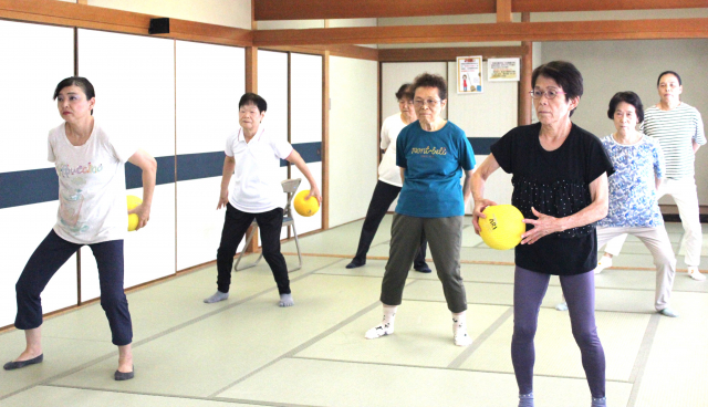 | 教室紹介 | 会員の皆さんは、年齢幅が広いですが、元気で明るく、楽しい雰囲気で参加しています。健康な体づくりはもちろん、コミュニケーションの場としても会話に花が咲き、年齢にとらわれず楽しく挑戦しています。 |