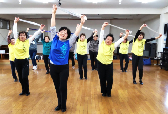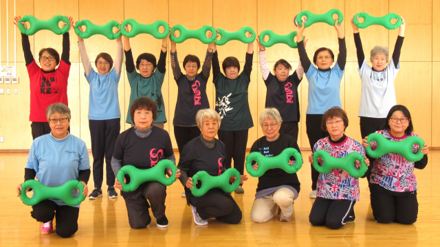 | 教室紹介 | 指導者になって最初の教室(9年目)です。健康意識が高く心身ともに健康で過ごすために、筋力づくり、脳トレ等楽しく活動しています。明るく前向きな会員さん達の笑いが絶えない教室です。 |